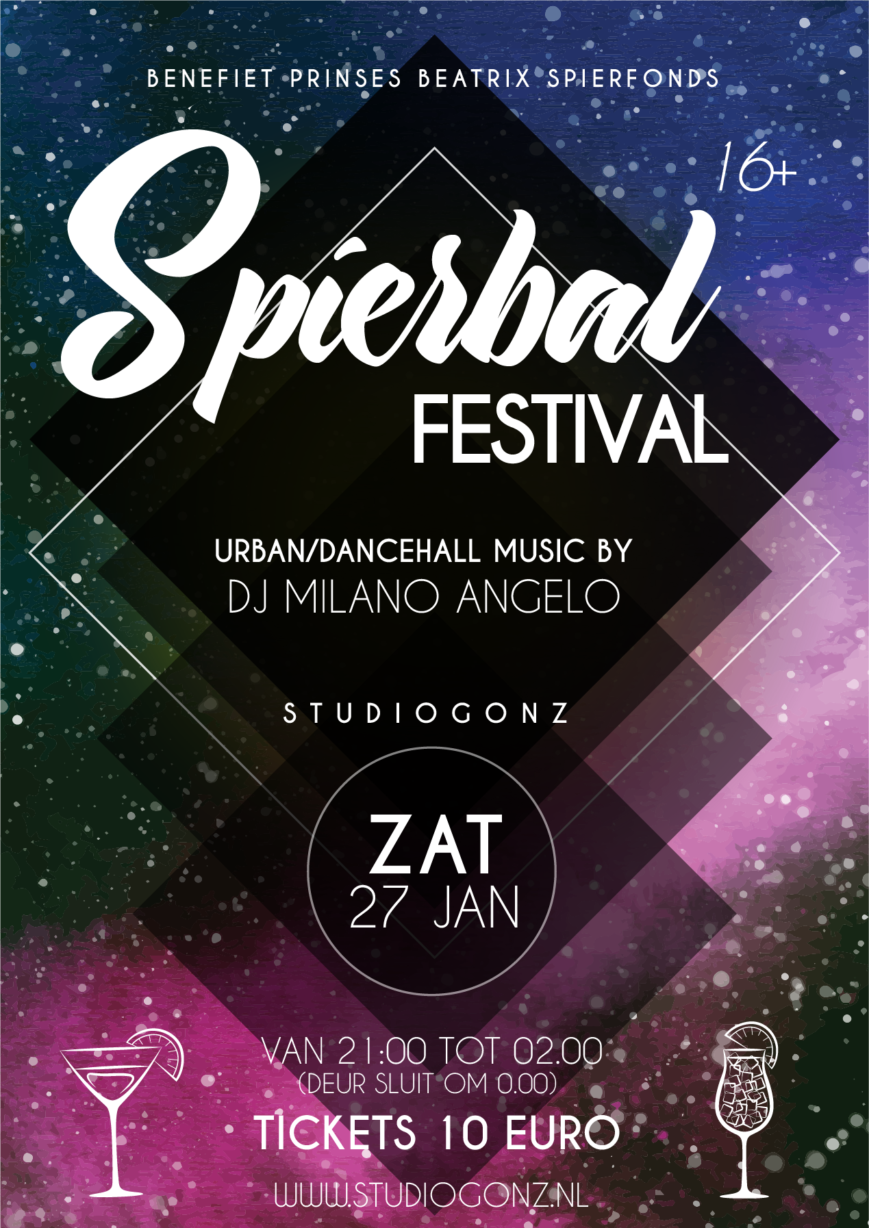 aterdagavond 27 januari nog niks te doen en zin om lekker te dansen op urban/dancehall muziek van DJ Milano Angelo? Koop dan een kaartje voor het Spierbal Festival in StudioGonz Gouda! De volledige opbrengst gaat nar het Prinses Beatrix Spierfonds en ook jij hoeft niet met lege handen naar huis, want je kunt mooie prijzen winnen in onze loterij!