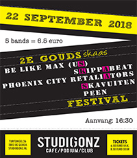 Hét SKAfestival van Gouda en omstreken met optredens van o.a. Be Like Max (US), Skippabeat, Phoenix City Retaliators, Skavuiten EN Peen!