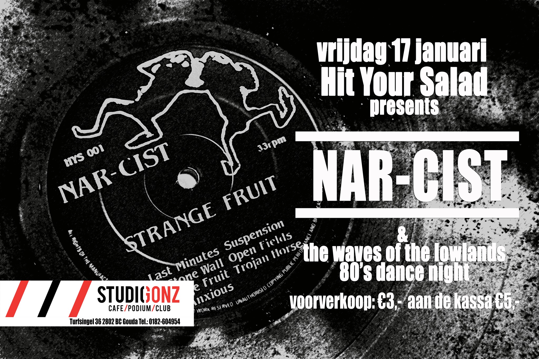 Hoog tijd voor weer eens een dansbare New Wave en Alternative 80's avond! Hit Your Salad presents “Nar-Cist & the Waves of the Lowlands”. De New Wave band Nar-Cist, brengt een avond vol dansbare jaren 80 nostalgie, verpakt in een zinderende live act en het draaien van de beste Eighties muziek van bands als, Joy Division, The Cure, The Sound, Killing Joke ect. Maar ook jaren 80 classics van Soft Cell, Depeche Mode en Talk Talk zullen niet ontbreken