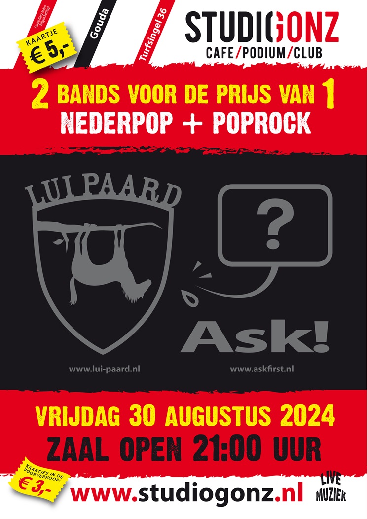Een avond met gevarieerde Nederpop van Lui Paard uit Amsterdam en catchy poprock van het Goudse Ask!