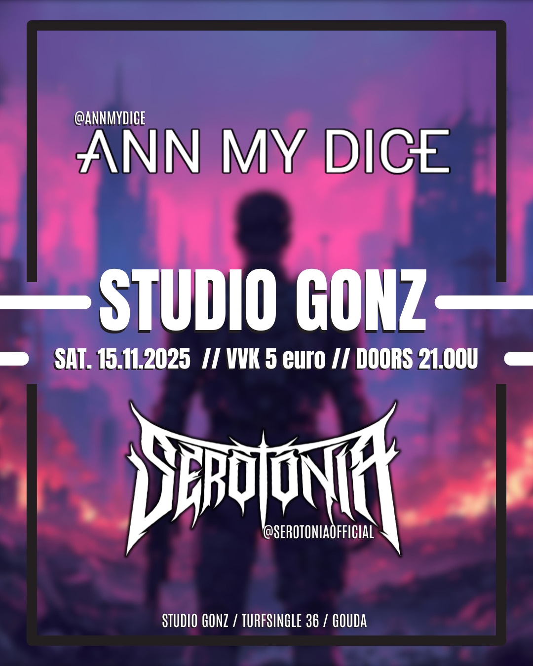 Ann My Dice is een vijfkoppige metalcoreband uit Nederland. De band combineert krachtige riffs en breakdowns met melodieuze hooks die je nog lang bijblijven. In hun teksten laat de band zich inspireren door hoe wij als mensen met elkaar omgaan en vooral met de aarde. Ann My Dice werpt een kritische blik op de tijd waarin we leven en biedt zowel muzikaal als inhoudelijk een sprankje hoop, waarmee zij vriend en vijand aanzetten tot actie.