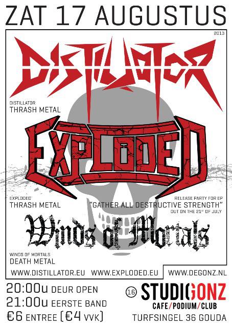 Exploded + Winds of Mortals + Distillator - Een lekker avondje Trash- en Death Metal! - zaterdag 17 augustus 2013 - STUDIOGONZ - Cafe/Podium/Club in Gouda